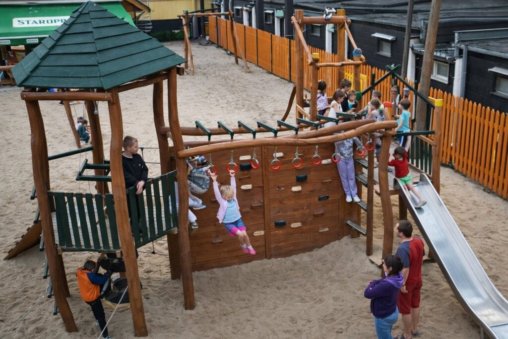 Dovolená s dětmi může už dopředu nahánět hrůzu. Jsou neposedné, stále vyžadují nějaké aktivity, nenechají rodiče v klidu, chtějí s nimi hrát karty, fotbal, tahají je za ruce od nedopitého kafe, protože mají slíbenou procházku se zmrzlinou. Nic takového ovšem nehrozí v chatové osadě Jachta. Tam se děti zabaví samy, rychle si najdou kamarády a rodičům dopřejí jejich zasloužený odpočinek. Celé skupinky dětí si vyhrají přímo před očima rodičů, kteří je mohou sledovat z pohodlného posezení na terase své chatky u oblíbeného občerstvení.